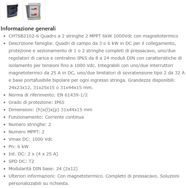 QUADRO 2 STR. CHT 2 MPPT 6 KW 1000VDC