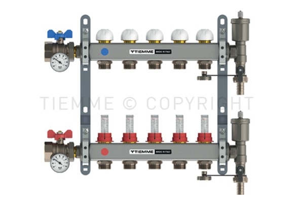 COLLETTORI DI DISTRIBUZIONE IN COPPIA DA 1´´ CON 5 USCITE DA 3/4 CON FLUSSIMETRO, VALVOLE E STAFFE 3850011