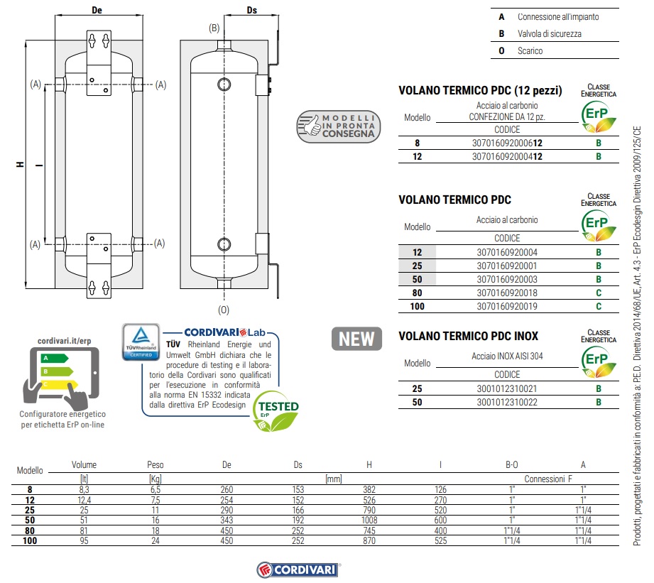 Nome:  VOLANO TERMICO PDC PENSILE 100 LT. CORDIVARI ( ACCUMULO INERZIALE)