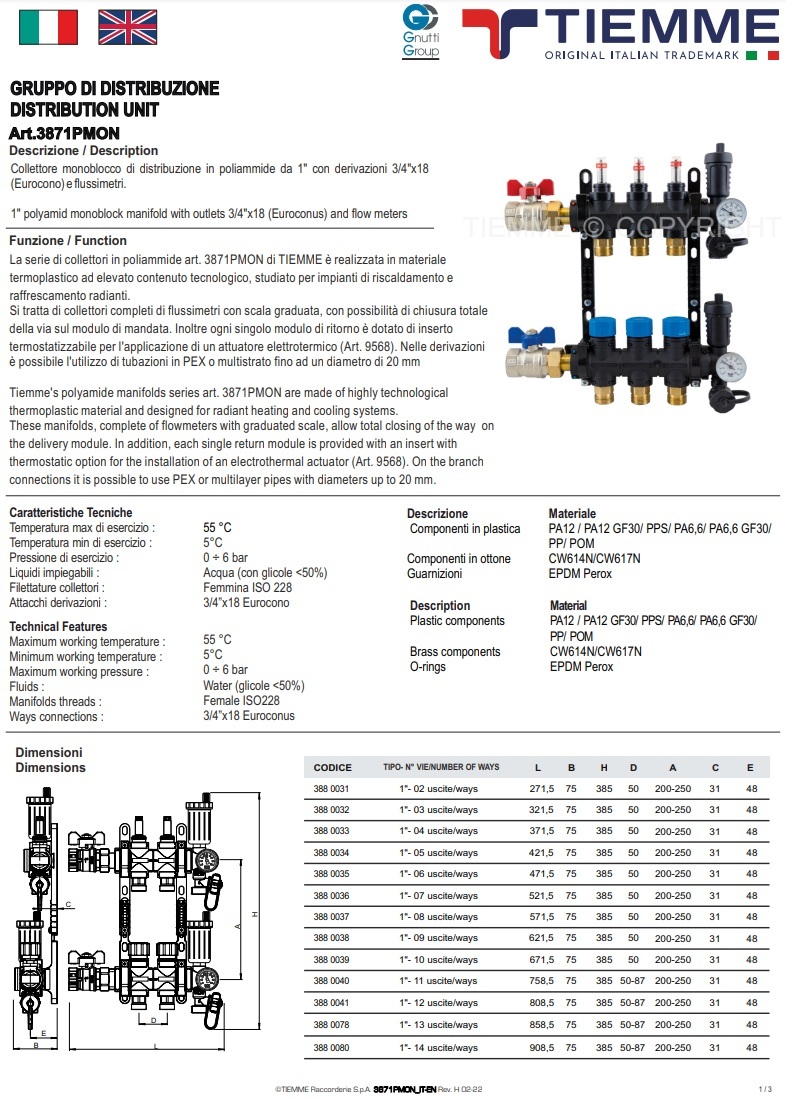Nome:  COLLETTORI DI DISTRIBUZIONE POLIAMMIDE IN COPPIA DA 1´´ CON 10 USCITE DA 3/4 3871PMON 3880039